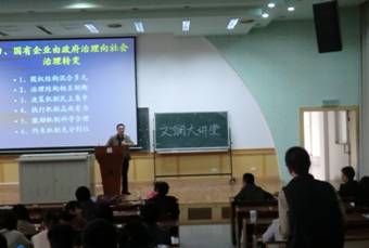 (通讯员:夏勋)2012年3月29日下午3点,企业管理专业副教授胡川老师做客文澜大讲堂,为我校学子交流“国有企业社会治理与创新”。 胡川教授以幽默风趣的授课方式向我们介绍了目前国有企业改革现状,指出国有企业在改革的过程中仍存在的问题以及我国国有企业政府治理对企业技术创新的影响,并在此基础上提出了对策和建议。 与会学生积极参与,投入在胡川教授的讲解中,并在会后与胡川教授就一些具体问题进行探讨,气氛相当热烈。讲座于下午5点圆满结束。 此项活动旨在丰富学生课后生活、了解最新学术动态、提高研究生对学术的兴趣,得到了广大师生的一致好评!