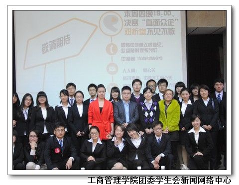 本次大赛邀请“瑞穗实业银行”财务及风险管理科科长刘争先生、“华泰证券”人力资源经理冯彩女士、“腾讯大楚网”人事部主管吉莹女士、“智联招聘”校园部华中区域经理戴强先生及“武汉相互广告有限公司“人事行政部经理孙树娟女士五位企业代表作为评委,我院分团委书记孙开帆老师出席了本次比赛,并现场指导工作。