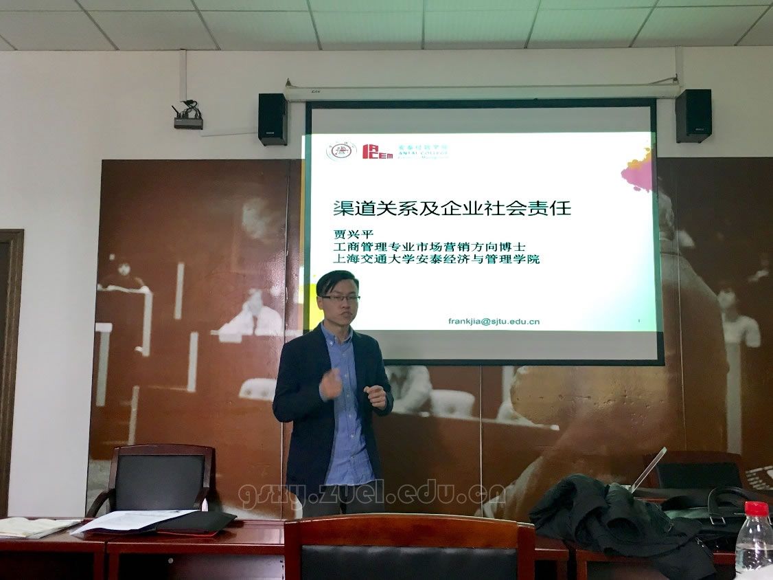 内部资源与企业社会责任的研究。同时分享英文研究利益相关者和CSR主动性对企业声誉的影响。接着他重点分享了企业社会责任取向一致性在供应链中的影响,由Apple、麦当劳等企业因为供应商的负面行为而使自身企业受到影响的实例,从而引出基于供应链影响的企业社会责任,通过一致性理论,结合社会网络联结,得出上游供应商与企业CSR活动达到一致时对企业有正向影响,同时确定了影响的边界。随后,他进一步分享了企业社会责任结合双边市场等方面的未来研究方向,为营销学子带来了启发性的思考。