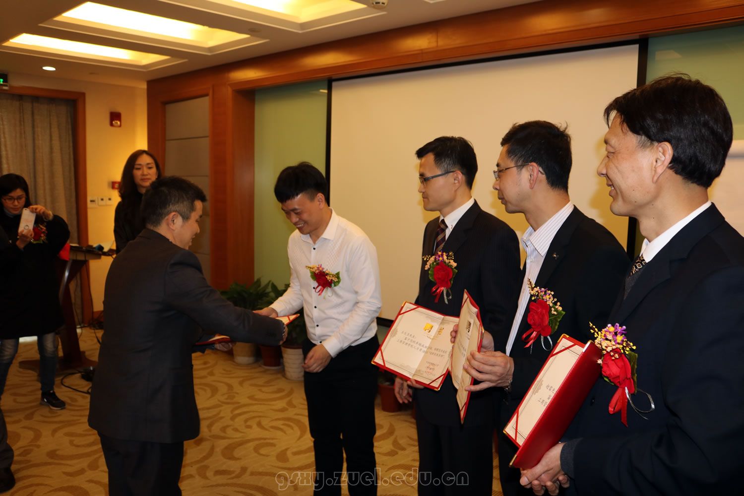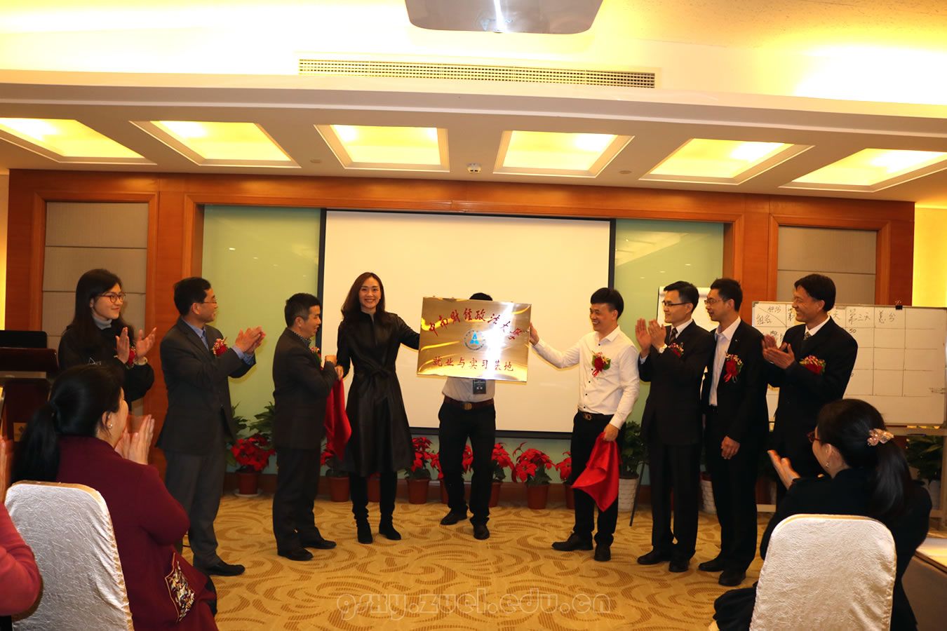 在随后的“中南财经政法大学就业与实习基地”揭牌仪式上,我院人力资源管理系主任赵琛徽教授为德胜洋楼公司知识产权与文化总经理赵雷先生、比拉迦公司负责人胡宏伟先生、比拉迦资深顾问兼北京和君咨询公司合伙人陆庆先生、德胜管理体系资深授课导师兼总裁领导力资深教练导师王大卫先生,颁发了人力资源管理专业“创新实践导师”聘书。