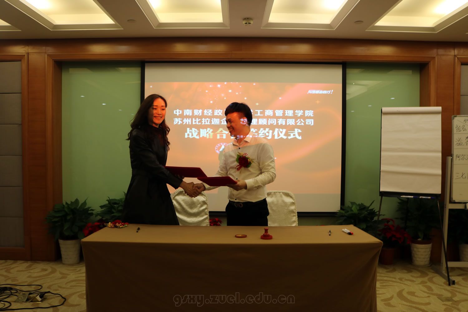 3月29日下午,在苏州金陵观园国际酒店会议厅,我院与苏州比拉迦企业管理顾问有限公司/深圳市比拉迦管理技术有限公司签订了就业实习战略合作协议,学院分管学生就业实习的李芳党委副书记与比拉迦公司董事长胡宏伟先生代表合作双方在协议上签字并发表了讲话。人力资源管理系赵琛徽老师、郑耀洲老师、学办马晴老师以及“中国德胜管理高级研修班”第37期企业家学员参加了签约仪式,共同见证了这一特殊的时刻。