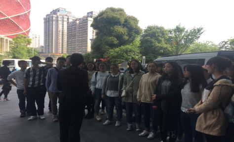 到达目的地,在专业老师以及酒店人力资源部负责人林婉人的带领组织下,全班同学们排好长队,有序地进行参观。