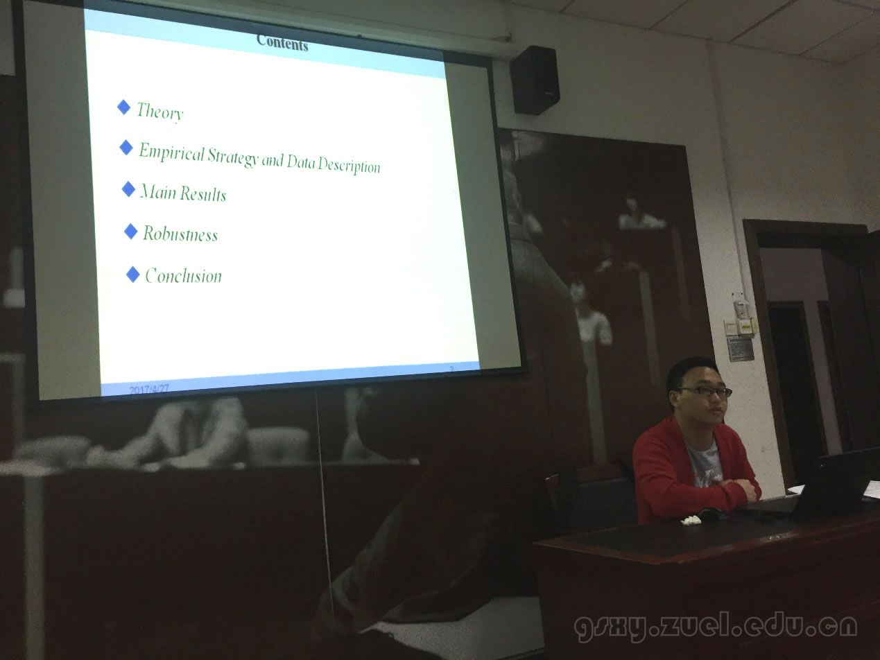 2017年4月27日晚,经济贸易系文献分享会(春季)第三期在文泉楼德鲁克会议室举行。在这次的分享中,国际贸易专业博士生王备为大家讲解了Bagwell 和Staiger于2011年发表在AER上的论文《What Do Trade Negotiators Negotiate About? Empirical Evidence from the World Trade Organization》。