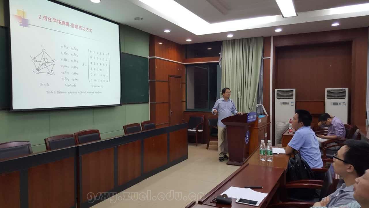 讲座主题为“在线旅游推荐系统中群体共识机制研究”,考虑到群体行为的偏好,通过群体之间的信任传递方法,建构群体之间的社会网络来分析其信任关系,用于达成群体共识,解决群体之间的异质性。吴教授指明未来研究方向,考虑群体关联属性提出新的信任传递方法,建立考虑决策者情感的信任路径集结方法,并运用敏感性判定方法来系统研究信任对群体共识的影响。希望能以讲座为契机,最后产生合作研究的火花。最后,作为SCI国际期刊主编的身份分享科研和投稿心得。
