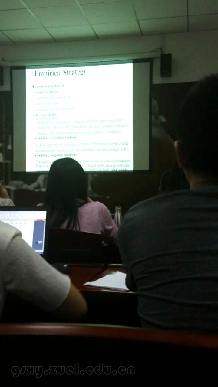 2017年5月11日晚,经济贸易系文献分享会(春季)第四期在文泉楼德鲁克会议室举行。在本次分享中,国际贸易学专业博士生潘莹为大家讲解了David Atkin于2016年发表在AER上的论文《Endogenous Skill Acquisition and Export Manufacturing in Mexico》。