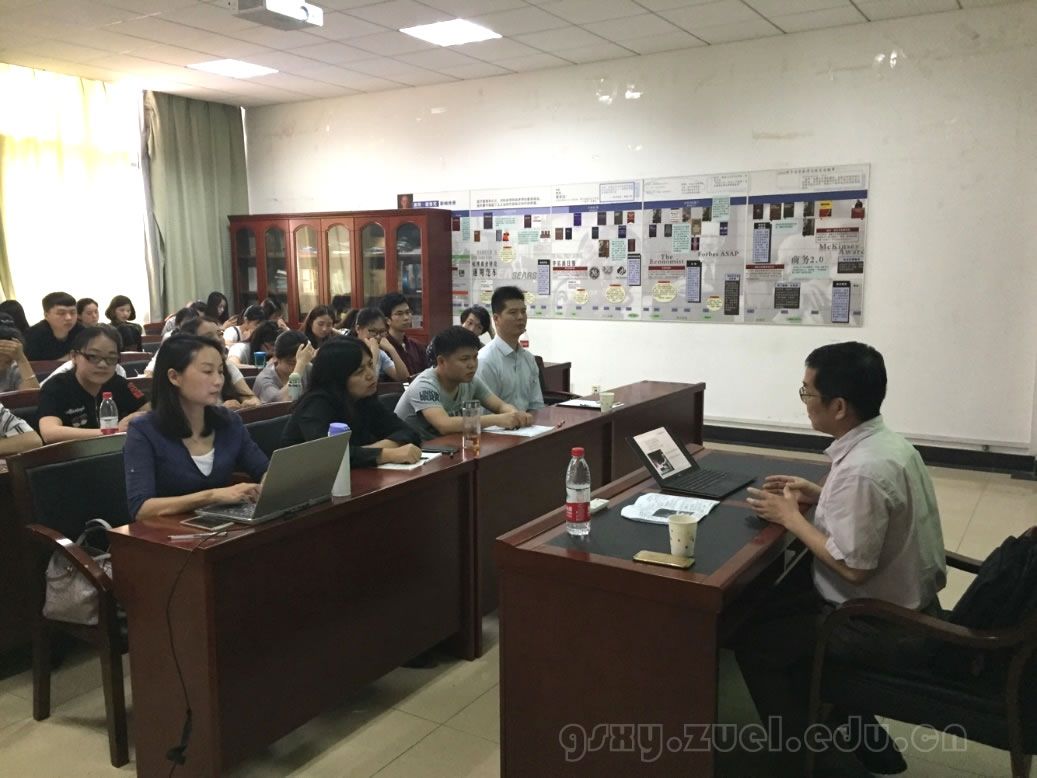 经贸系系主任黄漫宇教授主持了本次讲座,经贸系系副主任、国际贸易专业硕士生导师组组长吴英娜副教授,国际商务专业硕士生导师组副组长田毕飞副教授以及全体国际商务专业硕士研究生和国际贸易专业硕士研究生参加了此次讲座。