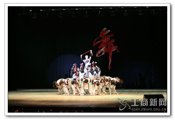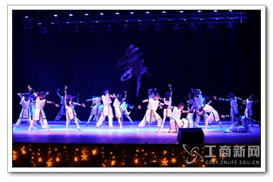 在激昂的呐喊助威声中,我院作为第九支代表队携佳作《鄂伦春人》,意气风发地登上舞台。大地蛮荒,荆棘丛生,一个民族伴随着无尽的岁月,从历史深处走来。在明暗交织的灯光下,工商舞者身着一袭狩猎者服装,攀爬、跳跃,仿若是在山岭上的鄂伦春人的生活常态。一个仅有7000人的民族,每一个新生命的降生都是上天的恩赐,全族人旋舞着、簇拥着即将分娩的族人,如同一个庄严而隆重的仪式。随着襁褓里的婴儿的啼哭,新的生命终于问世,生命的火焰在燃烧。对生命的敬畏与珍重,母性的伟大与美丽在舞台之上展现得淋漓尽致,深深感染现场每一位观众。最终我院凭借出色的表演荣获本次大赛三等奖,在校园舞蹈大赛中留下灿烂的一笔。