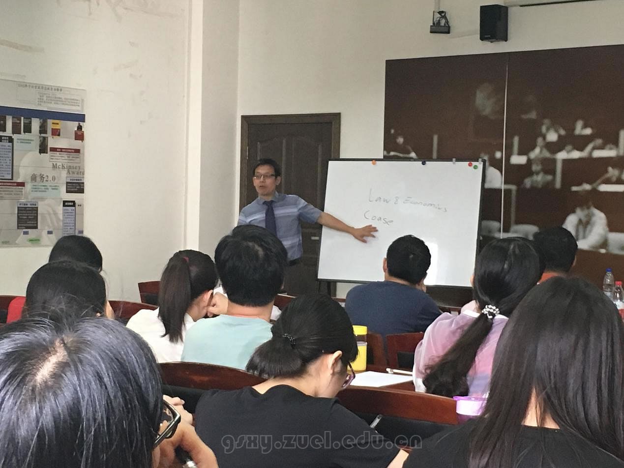 (李湾湾)2017年5月18日下午2:30分在红宝石最新线路手机版德鲁克教室,科斯研究所高级研究员、浙江大学科斯经济研究中心国际主任、《人和经济》执行主编王宁教授为我院师生带来了主题为“经济中的法律:科斯版法律经济学”的精彩讲座。本次讲座是经济贸易系Seminar2017年第3期,总32期。“经济贸易系Seminar”(原文澜国际贸易Seminar)是由红宝石最新线路手机版经济贸易系举办的特色专业学术交流平台,旨在通过与国内外经贸学者的交流,共同推进中国经济与贸易研究的知识积累,为中国开放型经济发展提供学者观点和智力支持。
