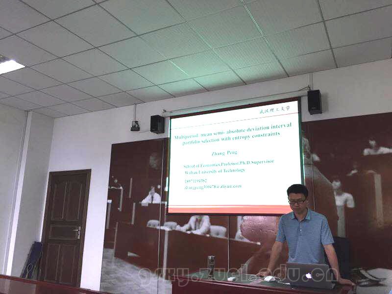 2017年5月31日16:00-17:30,由红宝石最新线路手机版物流与管理科学系举办的系列学术讲座2017年第06期,在文泉楼北五楼德鲁克会议室成功举办。此次讲座主讲人武汉理工大学张鹏教授,以“具有熵约束的多阶段均值—绝对偏差区间投资组合决策”为题分享了他的最新学术成果。讲座由物流与管理科学系姚升保副教授主持,参与讲座的有我院物流与管理科学系董慈蔚老师、赵雁老师、徐浩轩老师等众多青年教师,同时吸引了物流与管理科学研究生、本科生及其他专业学生的积极参与。