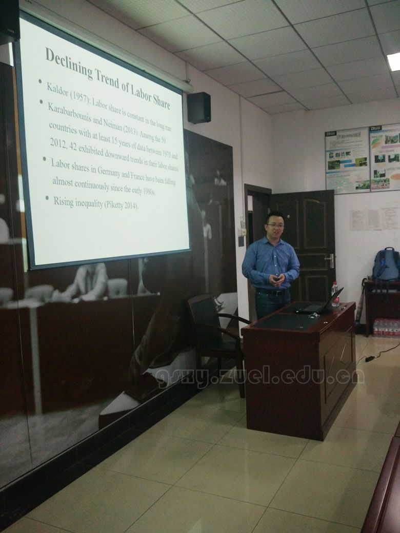 张勋老师以“道路基础设施和劳动收入分配的关系,来自中国制造业的证据”为题分享了他的最新学术成果。本次讲座由农业经济管理系田云副教授主持,参与讲座的有我院农业经济管理系的吴海涛教授、郎晓娟老师等,同时还吸引了该系研究生、本科生及其他专业学生的积极参与。