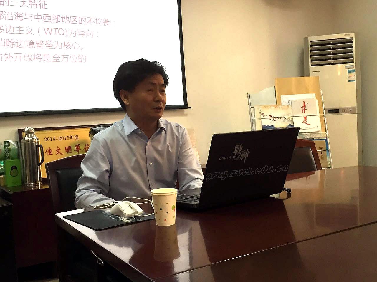讲座伊始,李向阳教授以“一带一路”的界定为切入点,对学术界关于“一带一路”研究的“虚化”、“泛化”进行了详细的介绍。从其简明扼要的叙述中,描述出了相关学术论文在以上问题中的表现。另外,李教授在研究中,结合当下“一带一路”白皮书的描述,认定了“一带一路”发展导向型区域合作机制。在此基础上李教授认为“一带一路”是以古丝绸之路为纽带,以互联互通为基础,以多元化合作机制和“义利观”为特征,以打造命运共同体为目标的新型区域合作机制。依据以上研究和现有的资料,李教授又对“一带一路”提出以下观点:1,“一带一路”是新时期我国周边战略的重要依托;2,“一带一路”是经济外交的新平台;3,“一带一路”是新一轮全方位对外开放的重大举措;4,“一带一路”是提供全球公共产品(服务于中国的和平崛起)。最后,李教授对于现场听从提出的相关问题做出了详细讲解,同时给他们指出了专业可行的建议。