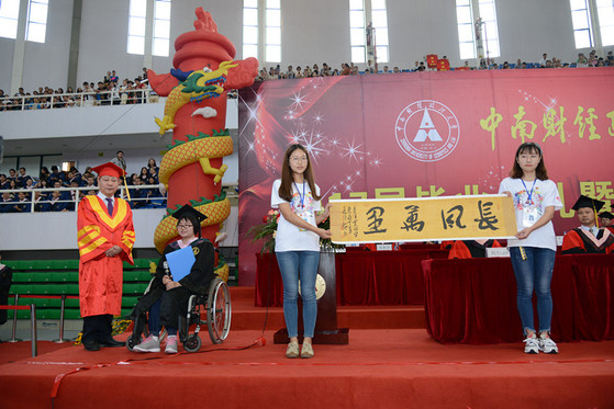 因为儿童时期交通意外受伤落下残疾的李佳雯,2013年9月坐着轮椅进入中南财经政法大学校园。虽然家境贫寒,但四年大学生活中,李佳雯不仅克服了生活带给她的各种磨难和挑战,还积极参加了大学生创新训练、“互联网+创业大赛”等学术实践活动,锻炼自己的同时还回馈家乡,同时取得了优异的成绩。如今,李佳雯已被保送至中国人民大学硕博连读继续深造,并被评为“2016年度中国大学生自强之星”。她的故事被校报、新闻网以及《中国青年报》《长江日报》等多次报道,收获了中南大师生校友和无数热心人士的关注点赞。