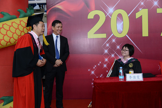 当天作为优秀毕业生代表发言的李佳雯,也以她阳光自信的表现和“只要找对了方向,并且不懈努力,就没有不可能实现的理想”的发言,再次让全场七千余名师生校友动容,大家向这个用自强克服不可能、用轮椅碾出励志人生路的女孩送上了最真诚的掌声和祝福。