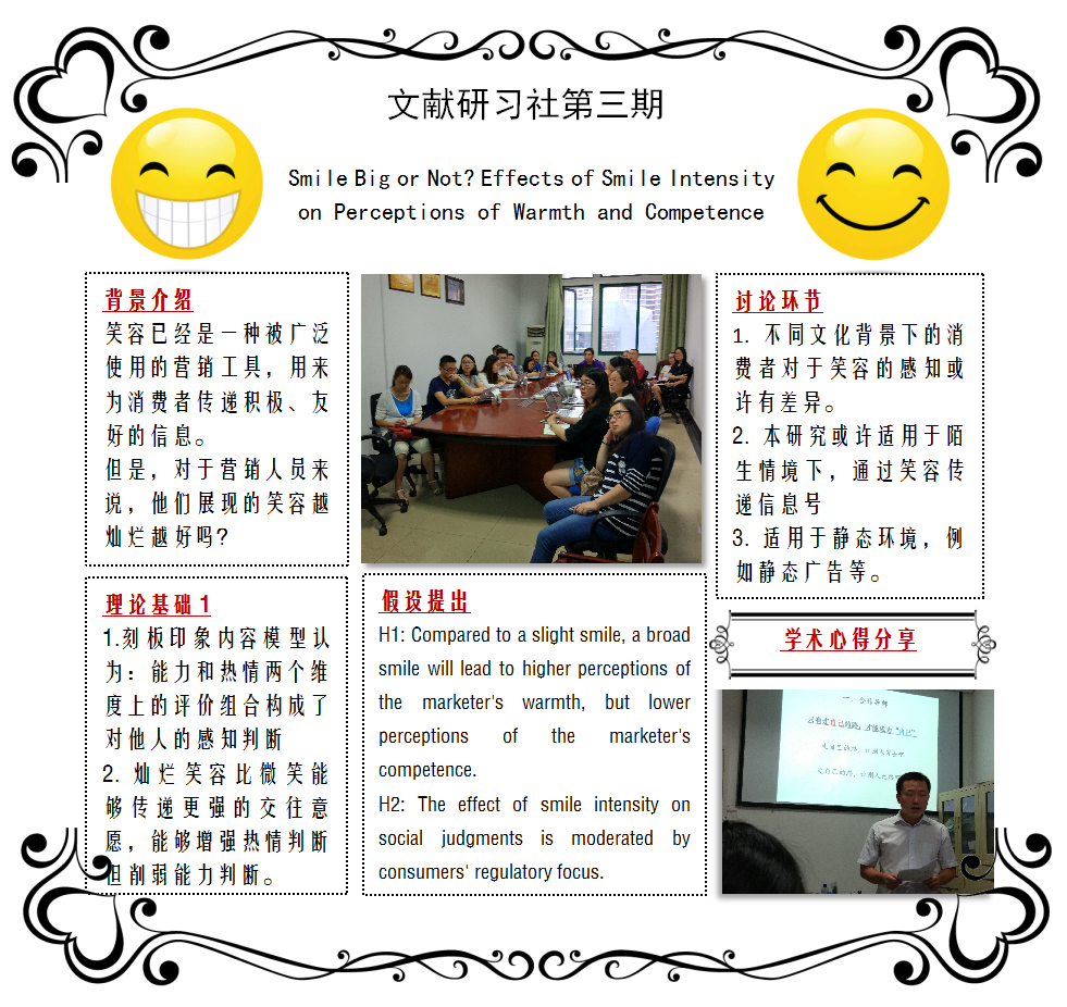 目前,营销博思堂共举办了四期活动,对近期发表于JM、JMR、JCR、MS、JCP、JAMS等顶尖营销杂志的文献进行研读,探析国际最前沿研究动向。博思堂每期活动都获得了各专业、各年级老师和同学们的热烈反响。
