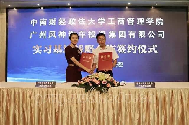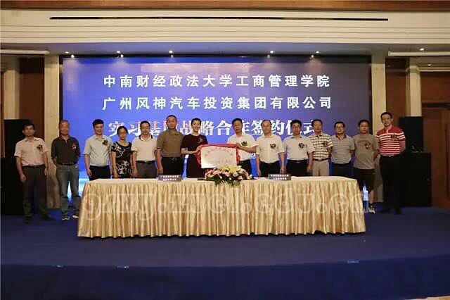 当天下午在蓝月亮公司活动结束后,我院一行三人赶往广州风神集团,与集团管理层座谈。17日上午,在广州风神高尔夫球会宴会厅,郑家喜副院长与广州风神集团总裁李文卿女士代表校企双方,签署了共建风神集团大学生就业实习基地合作备忘录,并为基地揭牌。合作双方都表示,愿意创新实践“校企两方两地实习实训模式”和“双导师制”,将大学生就业实习基地的工作筑牢、筑实。风神集团的所有公司高管和中南财经政法大学广州校友会的代表出席、见证了本次校企共建就业实习基地签约揭牌仪式,他们都表示全力支持大学生就业实习基地建设。