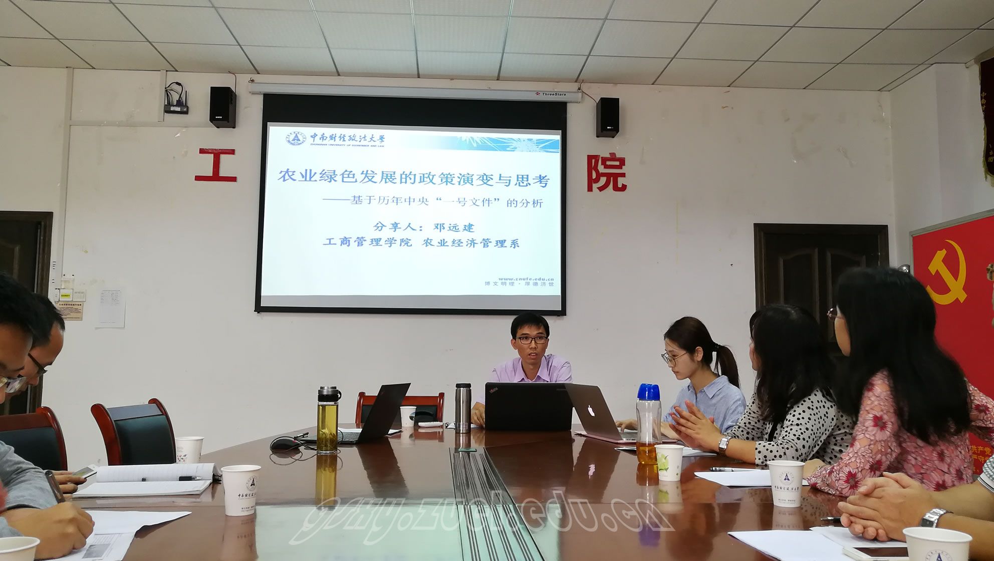 (通讯员:缪莎)9月21日上午11:00-12:00,文泉分享会第十六期在文泉北三楼会议室成功举办,这期分享会的主题为“农业绿色发展的政策演变与思考——基于历年中央‘一号文件’的分析”,由红宝石最新线路手机版副院长费显政主持,农林经济管理系邓远建副教授作为分享嘉宾,参与交流的有我院吴振球教授、黄漫宇教授、熊峰副教授等教师,此外,信息与安全工程学院的屈志光博士以及我院相关专业的研究生也积极参与了本次分享会。