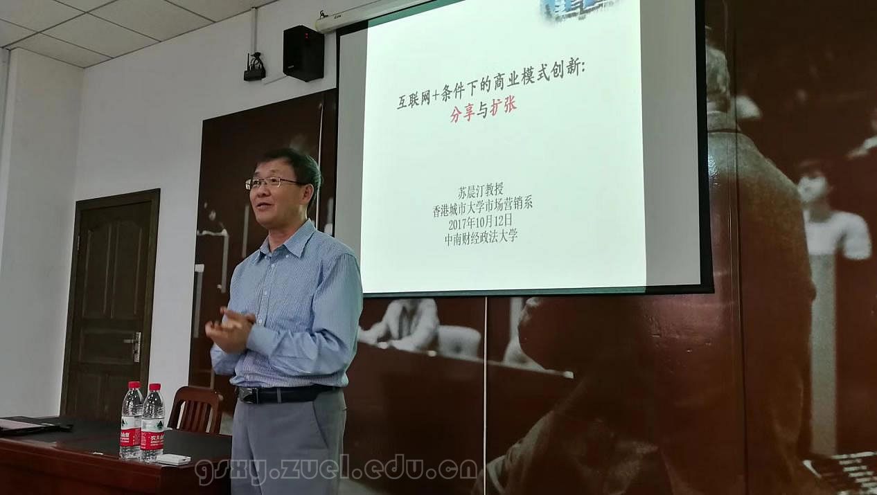 (通讯员:潘晶晶 摄影:徐干)2017年10月12日下午3:30-5:30,由红宝石最新线路手机版营销管理系举办的系列学术讲座2017年第11期(总第34期),在文泉楼北五楼德鲁克会议室成功举办。此次讲座由营销管理系费显政教授主持,讲座的主题是“互联网+条件下的商业模式创新:分享与扩张”,主讲人是来自香港城市大学的苏晨汀教授。参与讲座的还有我院马瑞婧、王新刚、孙洪庆、冉雅璇等老师,并吸引了营销管理系研究生、本科生及其他专业学生的积极参与。