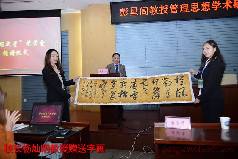 接下来是彭星闾教授“学习之星”奖学基金的捐赠仪式。杨灿明校长、彭星闾教授以及彭教授的学生湖南金融办副主任、原财富证券总裁周晖博士分别进行了捐赠。