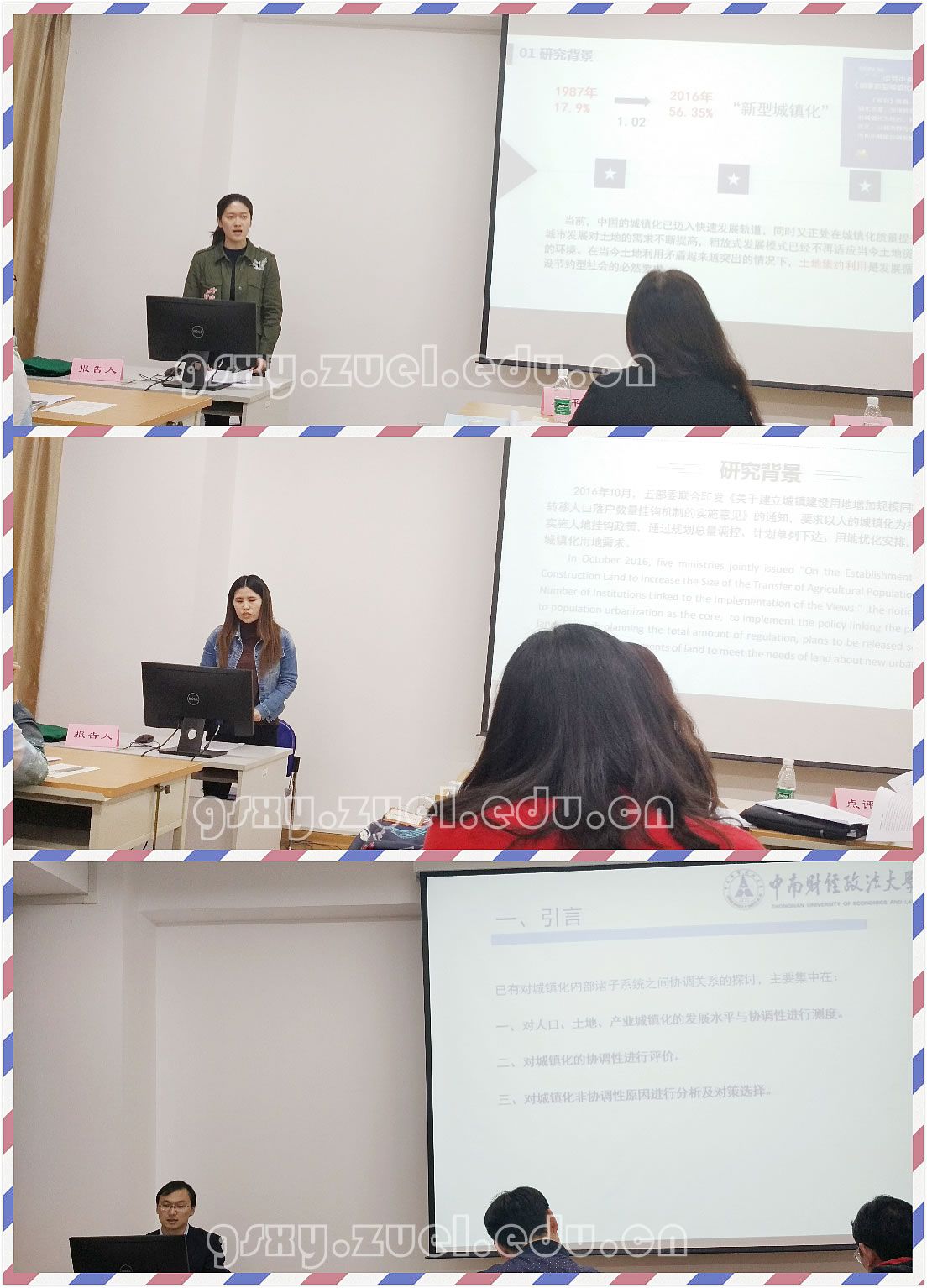 会议围绕“耕地质量评价与保护机制创新”、“土地生态管控与可持续发展”等重要议题展开研讨。我院土地资源管理专业博士生张敬岳、硕士生杨佩仪和李若洁参加“城乡用地结构优化与区域经济发展”分会场分别作《土地-产业城镇化协调性及互动关系研究》、《Spatio-temproal Evolution and Variance of Matchability between Urban Population and Land in China》、《武汉市城市土地集约利用与城镇化关系的计量分析》论文报告,并就相关问题与参会专家进行了交流探讨。