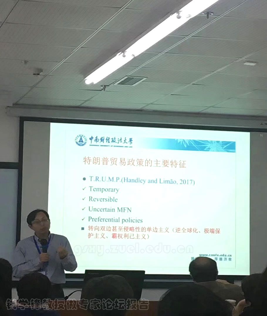 大会的八场主题演讲紧密围绕“中国构建全方位开放新格局下的外贸竞争新优势”这一主题展开。我院院长钱学锋教授在专家论坛中做了“特朗普贸易政策为什么会失败”的报告,获得大家广泛关注和热议;黄汉民教授和钱学锋教授还受邀分别在专家论坛和专题论坛担任主持人和点评人。黄汉民教授、钱学锋教授、