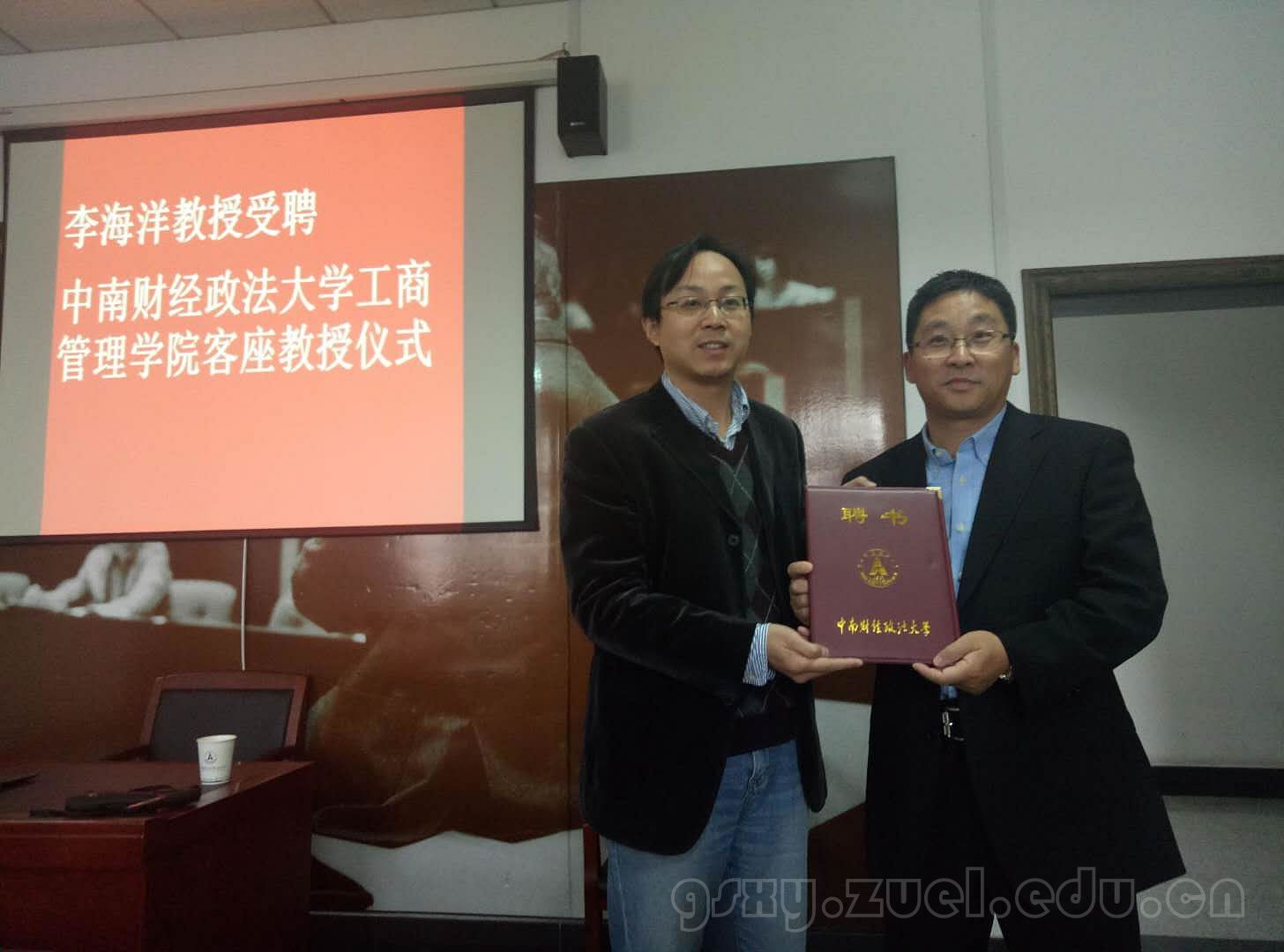 (通讯员 栗洋)2017年11月13日上午10点,我院在德鲁克会议室举行客座教授聘任仪式。美国莱斯大学(Rice University)李海洋(Haiyang Li)教授受聘我院客座教授。出席授聘仪式的有红宝石最新线路手机版院长钱学锋教授、副院长胡川教授、党委王华路书记、工商管理系系主任石军伟教授、张璇教授、刘璠副教授、梅丽霞副教授、田毕飞副教授、徐伟康博士、栗洋博士、毛江华博士、郭琨博士等部分教职工及学生代表。仪式由石军伟教授主持。 聘任仪式上,钱院长颁发聘书并致欢迎辞,对李海洋教授加盟我院表示热烈的欢迎和衷心的祝贺!钱院长指出李教授深厚的学术造诣和丰富的研究教学经验,能够促进我院的国际化水平的提升,为学科建设、学院建设、学校发展做出更大的贡献。李海洋教授发表了自己的感言,他首先感谢我院的邀请与聘任,