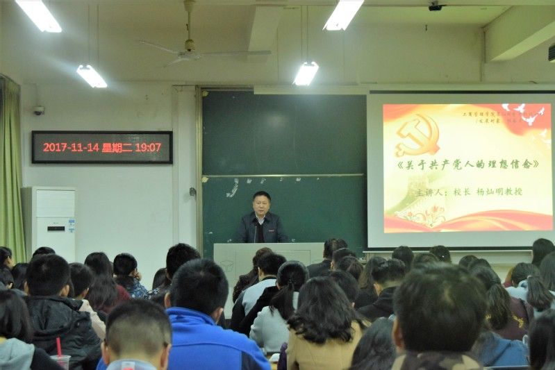 杨灿明校长从“为什么说理想信念高于天”、“中国共产党人的理想信念是什么”、“怎么坚持理想信念”这三个方面展开讲解,对中国共产党人的理想信念进行了深刻的解析。