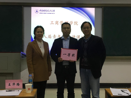 经过激烈角逐,旅游系的张大鹏老师荣获本次青年教师讲课比赛的一等奖,农经系的郎晓娟老师和营销系的姜璇老师荣获二等奖,三等奖由营销系的冉雅璇老师、物管系的徐浩轩老师和工商系的魏永长老师斩获,其他参赛老师则获得优秀奖。钱学锋院长、王华路书记为获奖选手颁发奖状并表达诚挚的祝贺。