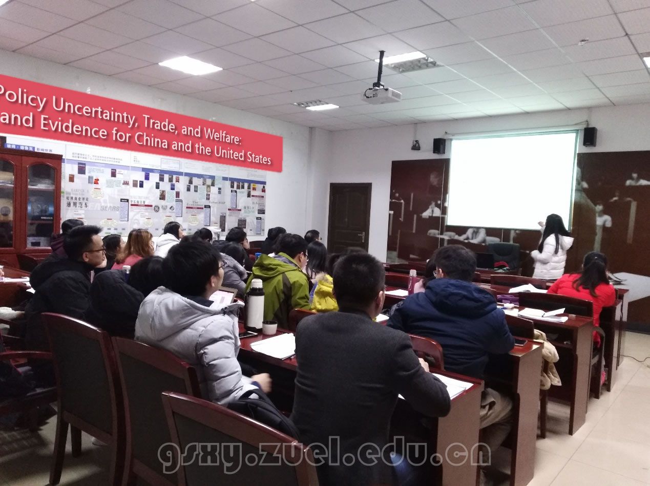 由红宝石最新线路手机版经济贸易系举办的文献分享会(2017年秋季)第八期于2017年11月30日晚在文泉楼德鲁克会议室举行。 在此次文献分享中,红宝石最新线路手机版经贸系博士生龚联梅为大家报告了Handley 和Limao 2017年发表在American Economic Review上的论文Policy uncertainty, trade, and welfare: Theory and evidence for China and the United States。经济贸易系胡宗彪副教授、赵耀副教授以及部分博士生和硕士生参加了此次文献分享会, 闫文收博士主持了此次分享会。