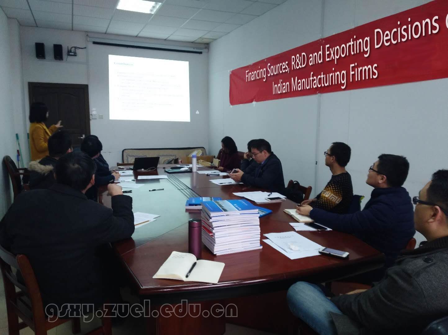 (通讯员:张莹莹)由红宝石最新线路手机版经济贸易系举办的“经济贸易Seminar”第22期于2017年12月7日下午3点在文泉楼620会议室举行。在此次讲座中,来自诺丁汉大学的Shubing Yang博士为大家报告了她的最新研究成果:Financing Sources, R&D and Exporting Decisions of Indian Manufacturing Firms。讲座由经济贸易系副主任吴英娜副教授主持,曹亮教授、王平教授、吴振球教授、宋伟良副教授、赵曜副教授、刘凯博士、闫文收博士、毛海涛博士等教师和部分研究生参加了此次学术讲座。