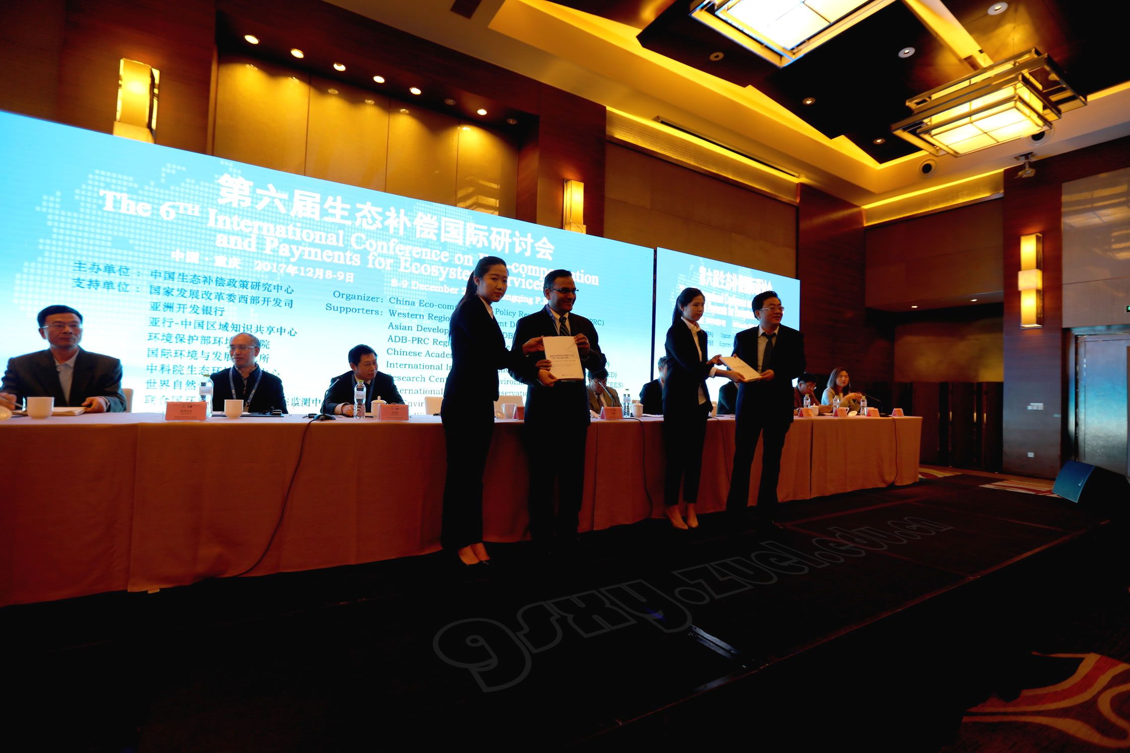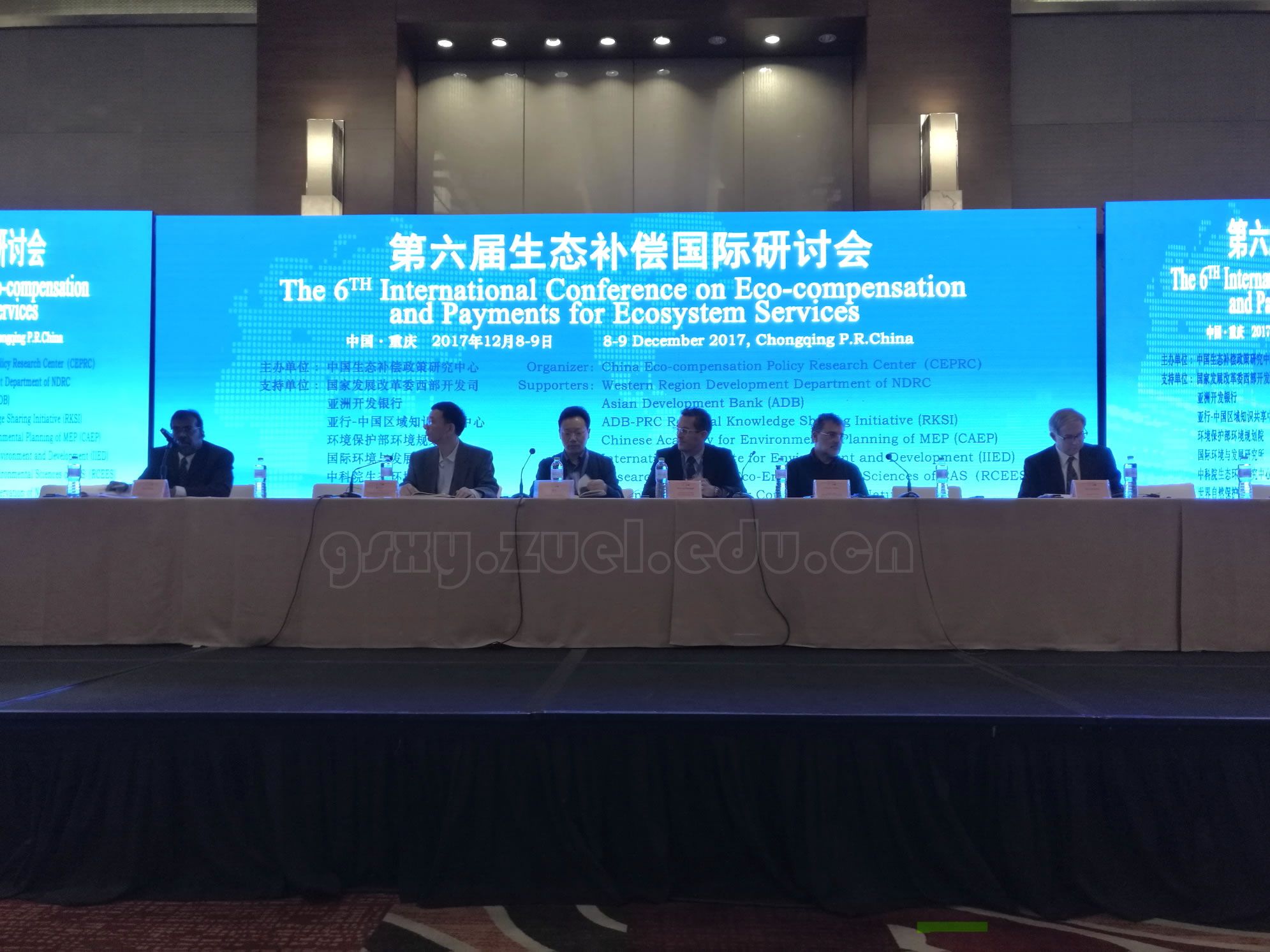 2017年12月8-9日,第六届生态补偿国际研讨会在重庆召开,本次国际研讨会在国家发改委西部司和亚洲开发银行东亚局的领导和支持下,由中国生态补偿政策研究中心主办,亚行—中国区域知识共享中心、国际环境与发展研究所、生态环境部环境规划院、中科院生态环境研究中心、世界自然保护联盟、联合国环境规划署世界保护监测中心、世界自然基金会和重庆市发展改革委等单位协办。本次会议主题为“从绿水青山到金山银山:以自然资本管理创新,来促进经济发展、生态保护和农村脱贫”。本次会议邀请了来自国内外的权威专家学者、相关政府部门领导以及国际组织、企业的代表近400人参加。会议以政策研讨为导向,国内外与会者回顾交流了中国生态