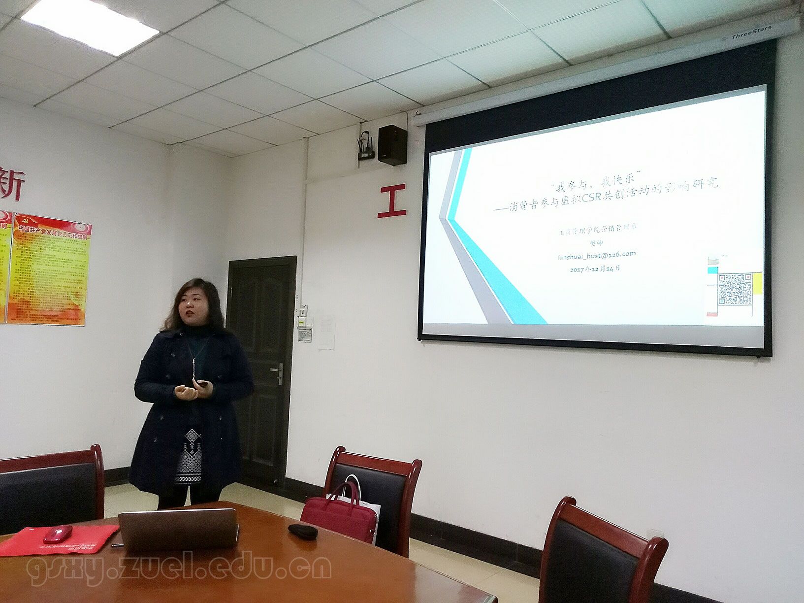 (通讯员:缪莎)12月14日上午11:00-12:00,文泉分享会第二十四期在文泉北三楼会议室成功举办,这期分享会的主题是“‘我参与,我快乐’——消费者参与虚拟CSR共创活动的影响研究与自科项目申请经验交流”,分享嘉宾为营销管理系樊帅博士。分享会由红宝石最新线路手机版副院长费显政教授主持,参与交流的有我院唐静副教授、刘璠副教授、冉雅璇博士、姜璇博士等教师,我院相关专业的研究生也积极参与了本次分享会。本次分享会包含两部分内容,第一部分是消费者参与虚拟CSR共创活动的影响研究,第二部分是关于申请自科项目的经验交流。
