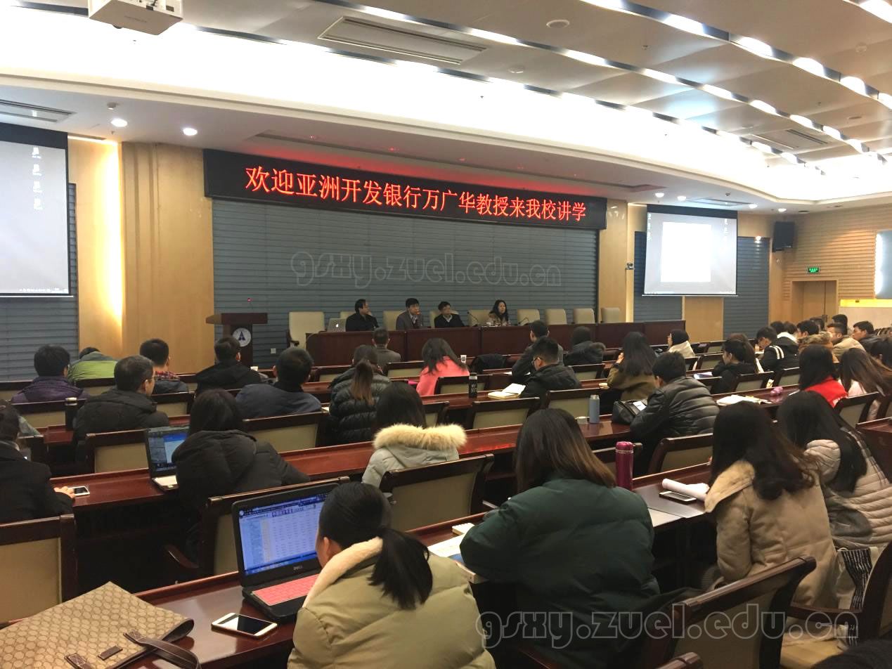 (通讯员:钟亚琪 彭继权)2017年12月14日上午9:00,由红宝石最新线路手机版主办、农业经济管理系承办的“长江论坛第11期暨南湖农经论坛第9期”在中原楼七楼会议室成功召开。此次论坛由红宝石最新线路手机版副院长吴海涛教授主持,亚洲开发银行研究院研究部主任万广华教授作为受邀嘉宾围绕 “中国与一带一路国家的贸易关系”这一主题展开了演讲。中南财经政法大学副校长邹进文,红宝石最新线路手机版钱学锋院长、王华路书记,农业经济管理系田云副教授、郎晓娟博士、崔许锋博士等师生百余人参与了本次讲座。