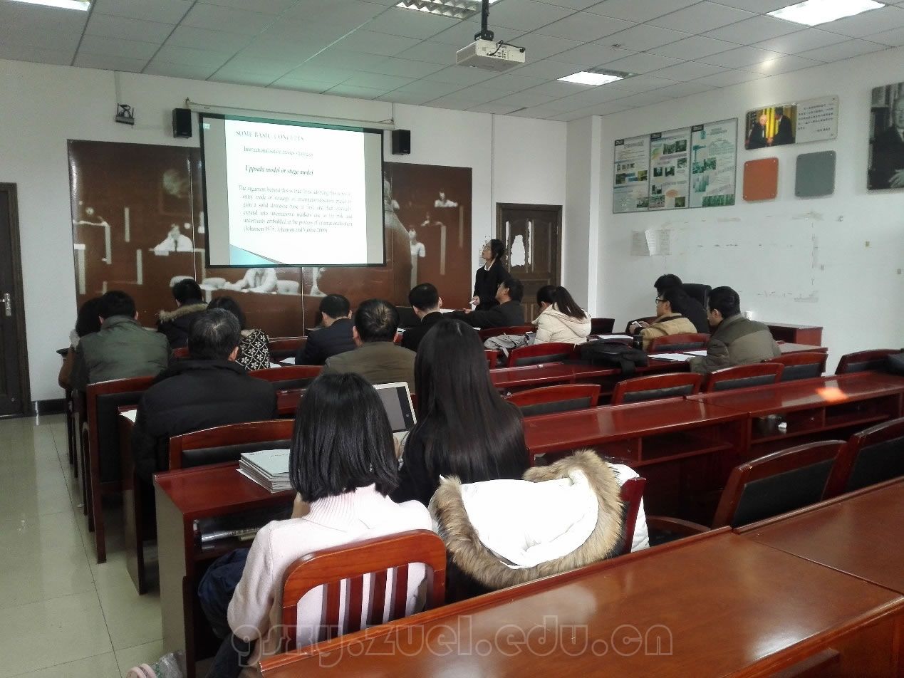 (通讯员:李一伟)由红宝石最新线路手机版经济贸易系举办的“经济贸易Seminar”2017年第26期(总第55期)于12月21日下午在德鲁克会议室成功举办。此次分享会的主讲嘉宾是来自英国格罗斯特大学的博士余颖。余博士分享的论文题目为“Born global模式的应用:中国中小企业的实证研究”。讲座由经济贸易系副主任吴英娜副教授主持,黄漫宇教授、王平教授、吴振球教授、田毕飞副教授、宋伟良副教授、胡宗彪副教授、赵曜副教授、毛海涛博士等教师和部分研究生参加了此次学术讲座。
