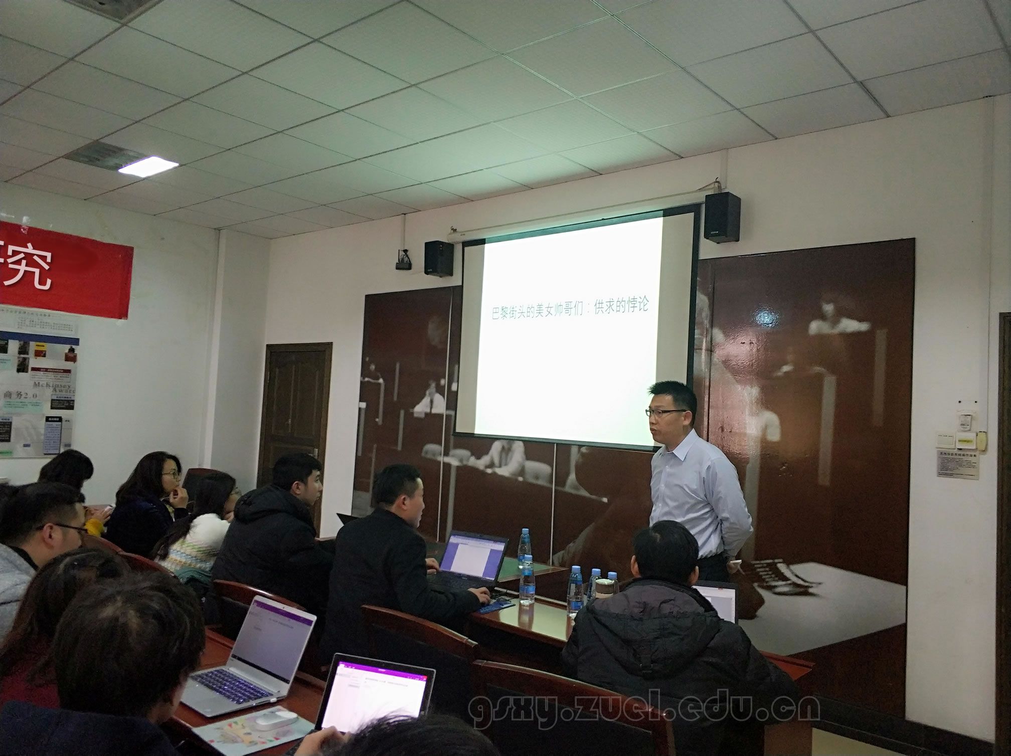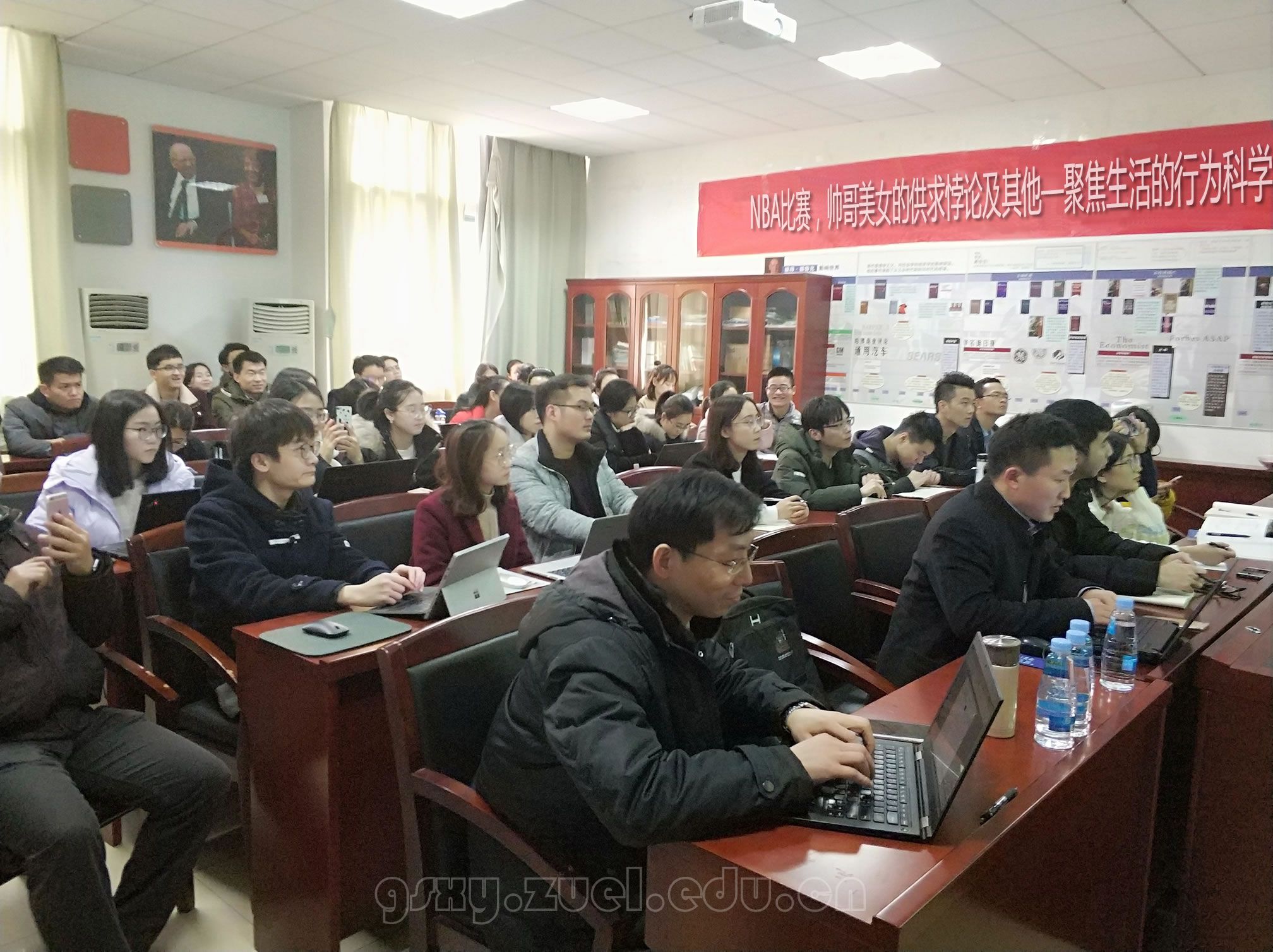 他以“NBA比赛,帅哥美女的供求悖论及其他—聚焦生活的行为科学研究”为主题分享了他的研究成果。参与本次讲座的还有我院王新刚,孙洪庆,马瑞婧,冉雅璇等老师,并吸引了营销管理系的研究生,本科生及其他专业学生的积极参与。