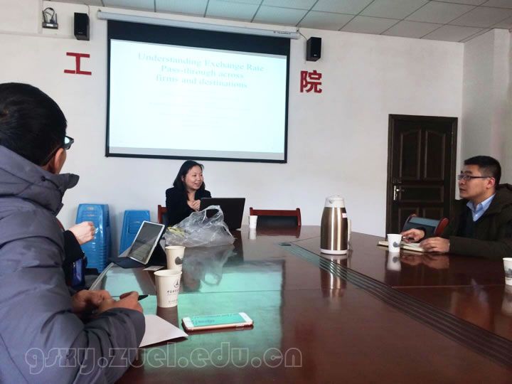 (通讯员:林凡)经济贸易系1月8日下午在文泉楼307会议室成功举办2018年第1期(总第57期)Seminar。本期论坛由西南财经大学经济与管理学院欧阳溥蔓副教授主讲。她分享了一篇名为《Understanding Exchange Rate Pass-through across firms and destinations》的论文。赵曜副教授、闫文收博士、毛海涛博士以及国际贸易学专业的硕士生和博士生也参与了此次讲座。