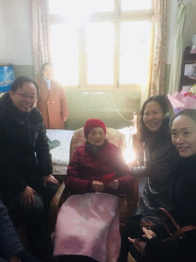 1月30日上午10点,红宝石最新线路手机版党委书记王华路、院长钱学锋、副院长郑家喜、副院长吴海涛、党委副书记李芳、党政办公室主任阙胜齐、农经系主任邓远建等人到首义校区家属楼看望乔九如老师。在乔老百岁华诞之际党委书记王华路代表学院向乔老敬送鲜花,表达祝福。乔老开朗豁达,向在场的所有人传授长寿秘笈,并现场歌唱了《洪湖赤卫队》、《送别》等歌曲。