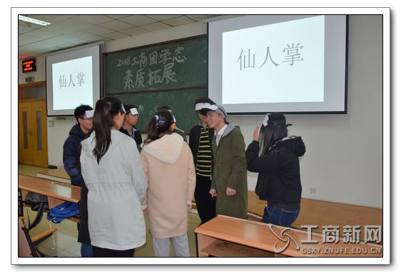接着,进行了第二个游戏:“害你在心口难开”。参赛选手们头戴一个纸牌,经过一轮比拼,没有说出或做出自己所戴纸牌上提示词的为胜。选手们踊跃参加,默契配合,在游戏中积极展示自我,比赛一度被掀至高潮。该游戏极大地考验了选手的随机应变能力与观察能力,让同学们在游戏中放松自我,回归快乐。