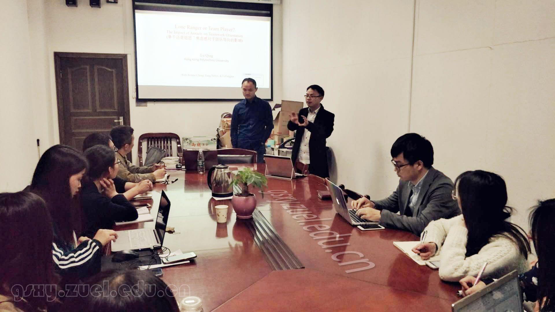 (通讯员 韩韦)2018年4月6日晚,由人力资源管理系主办的学术讲座活动——“单干还是组团?焦虑对于团队导向的影响”,在文泉北楼610人力资源管理教研室成功举办。主讲人为香港理工大学芦青博士。讲座由人力资源管理系汤一鹏博士主持,赵琛徽教授等人力资源管理系老师,以及多位硕博士参加了此次讲座。