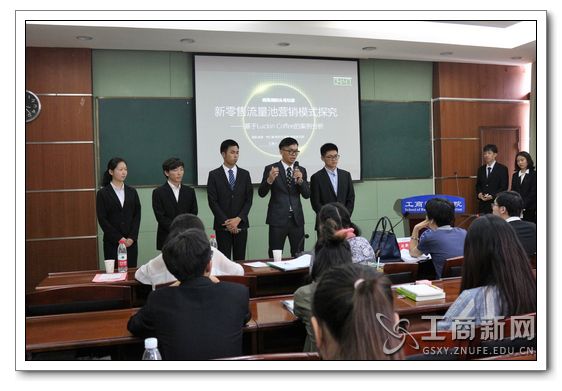 案例分析决赛以 “新零售”商业模式分析为主题。活动伊始,六支队伍依据前期抽签顺序依次上台进行团队展示与答辩,各计时5分钟。第一支参赛队伍“五人”以“淘咖啡”为例向同学们介绍了新型购物场所“淘咖啡”因无人销售而带来的便利与劣势,并提出了可行性的解决方案。第二支参赛队伍“晓南湖的头号玩家”队则为我们阐明了luckin coffee这一创造性购买咖啡的渠道胜于普通咖啡的理由。随后,第三队“工商达摩克利斯之剑”队通过分析“永辉超市”这一横跨销售、投资、股票等各大行业的公司运作的优劣来讲解“新零售”。紧接着的“geniuses”队从全新的“新零售”与“消费者主权”角度来分析京东“无界零售”战略。第五支队伍“努努虾”队基于Today便利店的营销手段和经营特色进行了详尽的阐释。最后一组的“工商入门”队实地考查了“盒马鲜生”这一新生商业模式,不拘泥于现存理论,而是将理论实践互相融合。