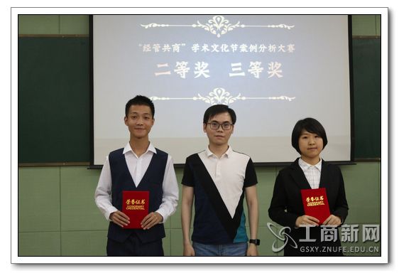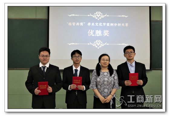 六支队伍展示结束后,王子超老师上台对六支队伍进行了综合点评。王子超老师首先肯定了六支队伍的卓越表现,也同时指出了展示的不足。另外,王子超老师给出了文案撰写和分析方法的相关建议,如目录需完备、文献备注清楚、理论实际相结合、不局限于理论而要有实际数据作为辅助等。老师点评过程中,工作人员经过认真统计,得到了六支队伍的最终排名。最终,五人队则凭借优异表现夺得案例分析大赛决赛一等奖的优秀成绩。商管入门队与努努虾队则分别取得了二等奖与三等奖的名次;而工商达摩克利斯之剑队、晓南湖的头号玩家队与geniuses队则获得案例分析大赛决赛优胜奖;贸易经济系1601班获得最佳组织奖获奖者。