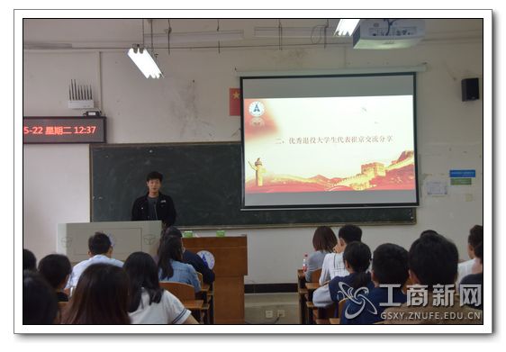 随后,优秀退役大学生崔京分享了他参军入伍的体会,并讲解了目前国家以及我校对大学生应征入伍的各项优惠政策以及大学生参军的基本流程和注意事项。严格的部队管理使崔京不断提升综合素质,无论是执行力还是身体素质都取得了很大改善;政府的各项经济补助也使他免除了后顾之忧,退役大学生优惠政策更是减轻了他考研的压力,最终顺利地考取了本校研究生。崔京表示,国防是国家的大事,国家对军队和军人的重视程度也不断加深,同学们可以在军队里施展才华,淬炼成钢,在部队里遇见更好的自己。
