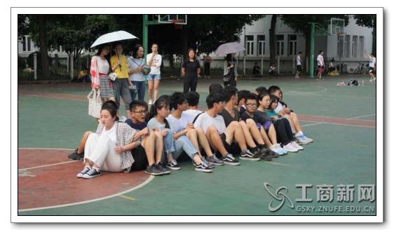 坐地起身燃起了在场所有人的激情。首先每班出3人,围成一圈,背对背坐在地上,三个人之间手臂勾手臂同时起身,若成功则每轮增加一人。每次机会限时两分钟,二十人为人数上限。其中工商1701和市营1701、1702联队都达到人数上限,但工商1701以人数最多且用时最少的赛果夺得第一。