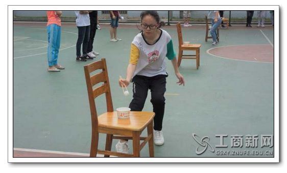 乒乓球运输将比赛推向高潮。每班派出的三名参赛队员需要用筷子从前一个容器中将乒乓球夹至下一个容器。比赛中农经1701、工商1702联队再次脱颖而出,获得第一。
