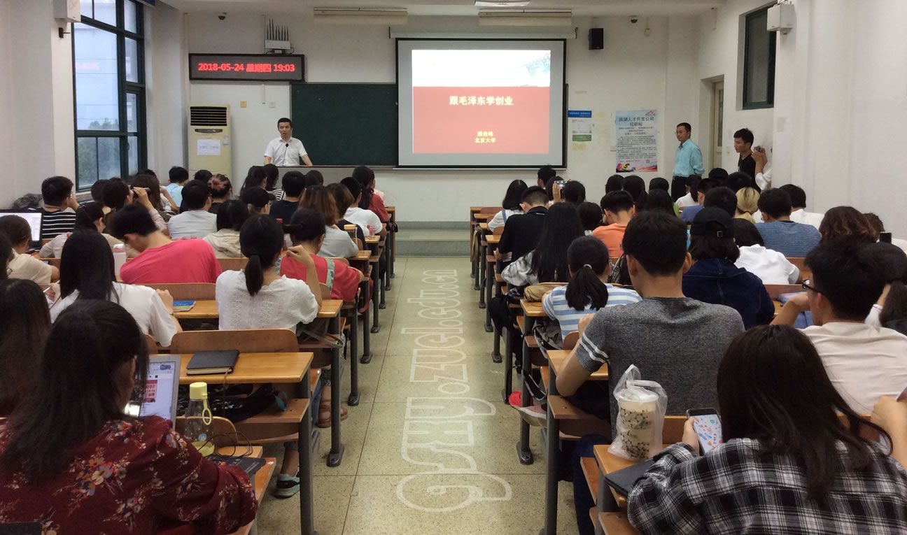 包括马云、王健林、任正非等知名企业家都或多或少地在创业和公司运营中学习和借鉴了伟人毛泽东的创业智慧。然后,顾佳峰博士具体剖析了我党第一代领导人毛泽东作为创业家所具备的独特创业智慧和创业思想,分析了毛主席在创业机会识别、团队建设、路径选择、创业战略等多方面的理论贡献和实践创新,鼓励我们向伟人学创业,修炼创业智慧,培养创业精神,把握时代发展的脉搏,不忘初心,勇往直前。
