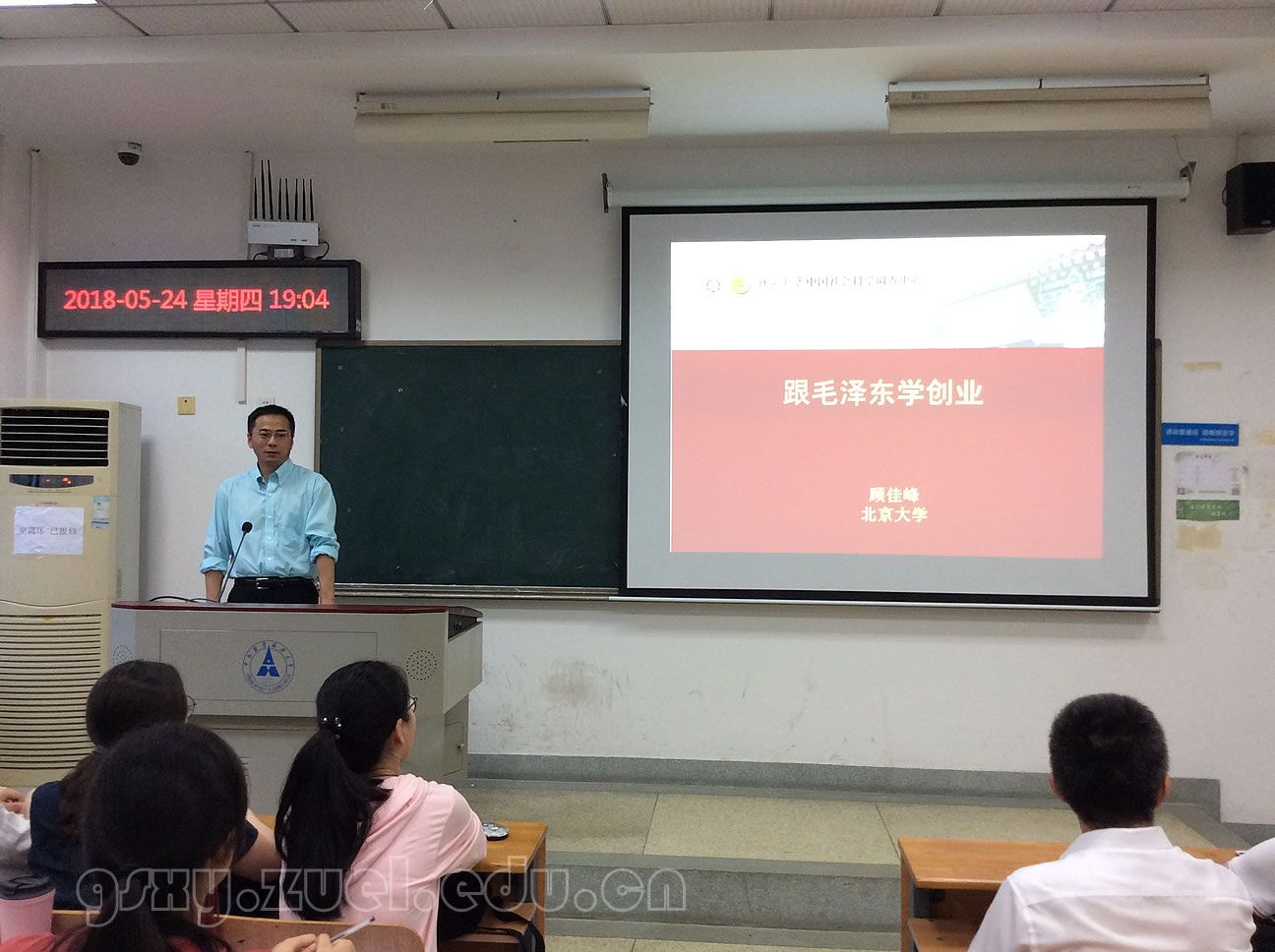 (通讯员王潇潇)2018年5月24日晚,由人力资源管理系主办的学术讲座“跟毛泽东学创业”在文泰楼311教室成功举办。主讲人是北京大学创新研究院副院长顾佳峰博士,讲座由人力资源管理系主任赵琛徽教授主持,讲座盛况空前,100余名本科生和硕士生积极参加了此次讲座。