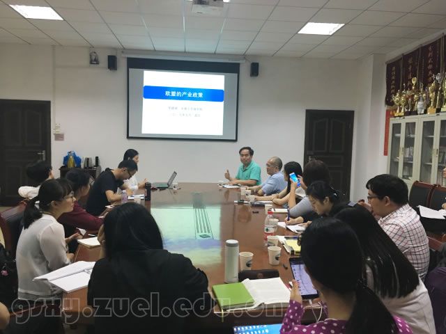 【刘亚岚 报道】2018年5月23日晚20:00,由工商管理系和现代产业经济研究中心主办的2018年第6期(总第58期)产业前沿讲座“欧盟产业政策:发展与启示”在文泉楼北307会议室成功举行。本次讲座的主讲人是中南大学商学院副教授、博士生导师李晓萍,讲座由石军伟教授主持。30余名老师、博士生、硕士生和本科生参加本场讲座。