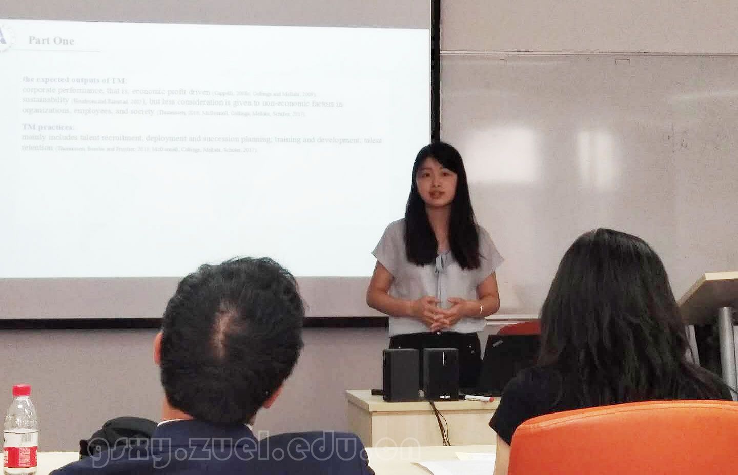 会议分论坛分三天在科研楼开展。我院Yi Liu副教授及其硕士研究生王湘南在分论坛“数字时代的管理问题”汇报论文“The Construction of Enterprise Talent Management Supply Chain Model Under the Sharing Economy”,并与诸多学者进行交流与探讨。