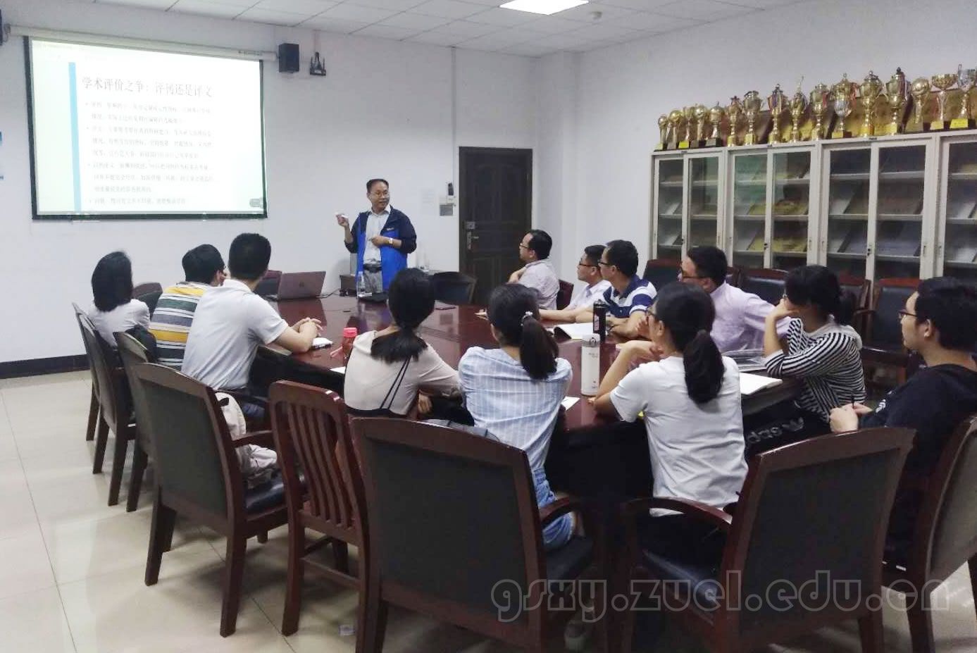 由红宝石最新线路手机版经济贸易系和新时代开放型经济研究中心联合举办的“经济贸易系Seminar 2018年第15期于2018年6月8日晚上在文泉楼四楼会议室成功举办。主讲人为中国社会科学院经济研究所研究员以及《经济学动态》编辑部主任杨新铭。杨新铭主任报告的题目是“构建和谐的学术共同体”。红宝石最新线路手机版钱学锋院长,经济贸易系田毕飞副教授、李敬子副教授、刘凯博士、毛海涛博士、闫文收博士等老师和博士生参加了此次学术讲座,此讲座由钱学锋教授主持。