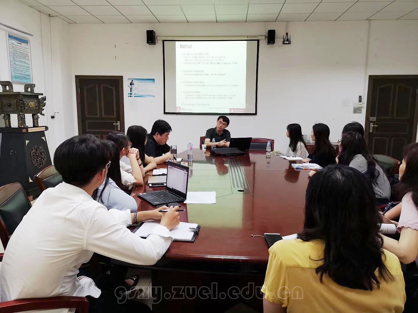 由工商管理系,现代产业经济研究中心举办的产业前沿讲座2018年第9期(总第61期)于2018年6月14日下午14:30-16:30,在文泉楼北407会议室成功举办。本次讲座围绕衰退期企业董事会任职为主题,由美国亚利桑那大学Eller管理学院战略管理学姜翰助理教授主讲。学院各系师生、清华大学及吉林大学博士生参加了此次学术讲座,讲座由万华老师主持。