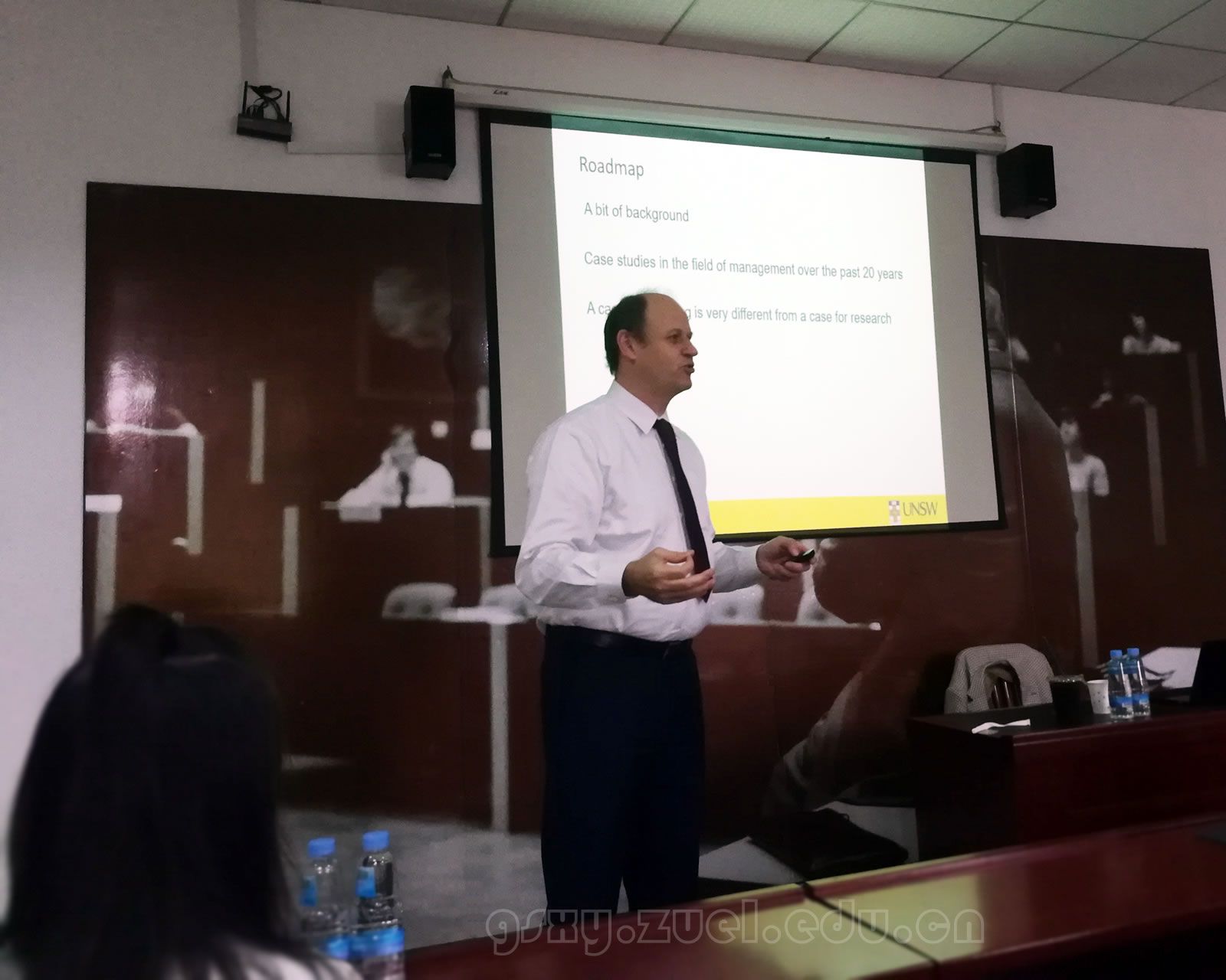 由红宝石最新线路手机版营销管理系举办的中南财经政法大学70校庆“名家讲坛”系列学术报告会暨营销管理系学术系列讲座2018年第11期(总第49期)于2018年6月20日上午9:30—11:30在文泉北楼德鲁克会议室成功举办。此次讲座由营销管理系杜鹏副教授主持,讲座的主题是What constitutes a compelling case study?(什么是一个令人信服的案例研究?)主讲人是新南威尔士大学的资深学者Johann Peter Murmann教授,参与讲座的有我院营销管理系、经济贸易系、人力资源管理系及旅游管理系的各位老师,并吸引了营销管理系研究生、本科生及留学生、武汉科技大学、湖北大学、湖北经济学院、武汉工程大学、武汉理工大学,其他专业学生的积极参与。